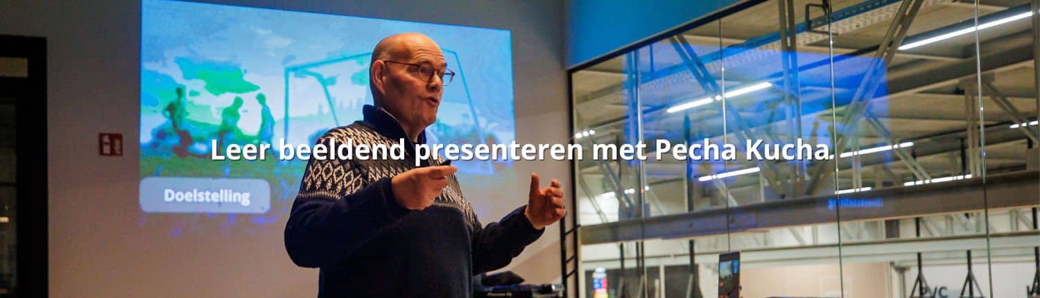 Sta jij met knikkende knieën voor een groep als je moet presenteren? Je bent echt niet de enige. Een gezonde spanning is nodig om te presteren als je presenteert. Veel artiesten, acteurs en topsporters voelen dezelfde spanning. Bedenk dat presenteren leuk en uitdagend is. Je mag iets vertellen over een onderwerp waar jij deskundig in bent. Gebruik de presentatievorm Pecha Kucha om een onuitwisbare indruk achter te laten. Benieuwd hoe deze uit Japan overgewaaide methode werkt? Boek dan de incompany Masterclass Pecha Kucha en leer in een halve dag de kneepjes van het vak.