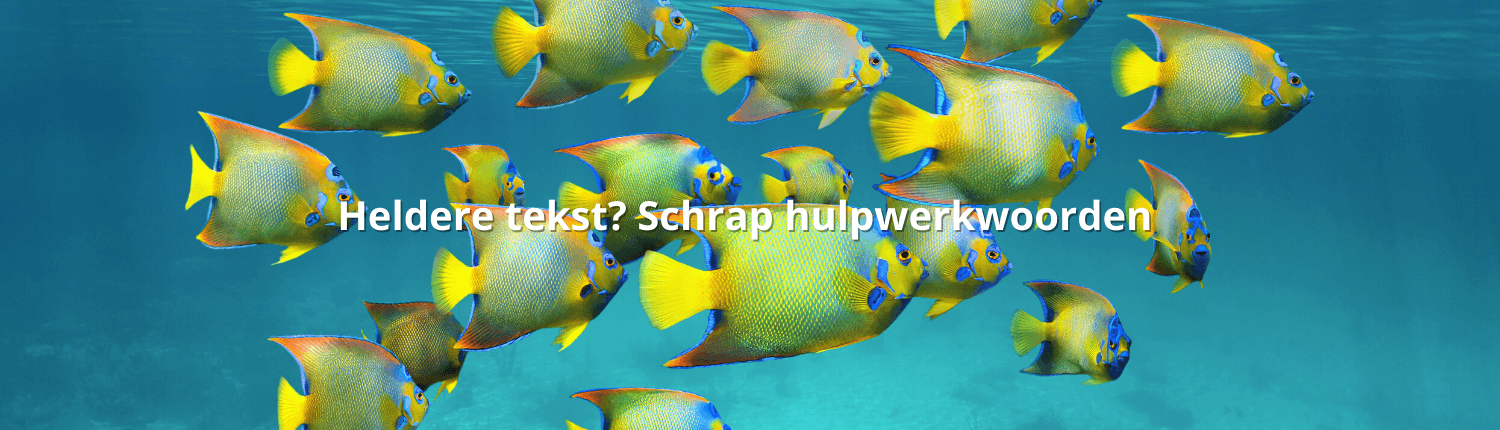 In helder water heb je een mooier uitzicht dan in troebel water. In een vijver vol kikkerdril zie je als duiker geen hand voor ogen als je kopje onder gaat. Helderheid speelt ook een belangrijke rol in je communicatie. Als schrijver en als lezer houd ik van heldere teksten. Veel formele en ambtelijke teksten zijn troebel, omdat ze te veel hulpwerkwoorden bevatten. Mijn advies: schrap hulpwerkwoorden. Ze zijn bijna altijd overbodig.