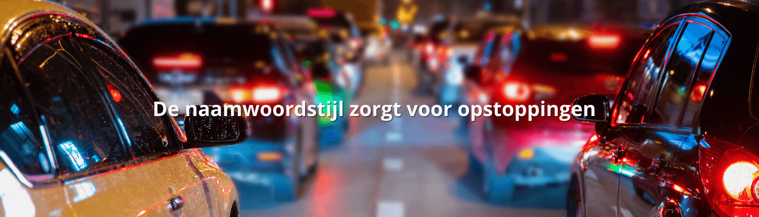 Met de naamwoordstijl creëer je draken van zinnen. Deze verfoeide constructie haalt de vaart uit een tekst. In een dynamische zin zorgen de werkwoorden voor vaart. Geloof me: de meeste lezers zijn er niet blij mee als je van een werkwoord een statisch zelfstandig naamwoord maakt. Zeker als je in een tekst de naamwoordstijlen aaneenschakelt. Zo’n tekst is moeilijk leesbaar. Een enkele keer is niet erg. En soms ontkom je er zelfs niet aan. Mijn schrijftip: voorkom de naamwoordstijl en gebruik werkwoorden waarvoor ze bedoeld zijn.